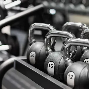 C'è un centro fitness con una vasta gamma di attività sportive.
